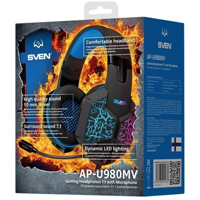 Căști gaming SVEN AP-U980MV, Cu fir, Negru/Albastru
