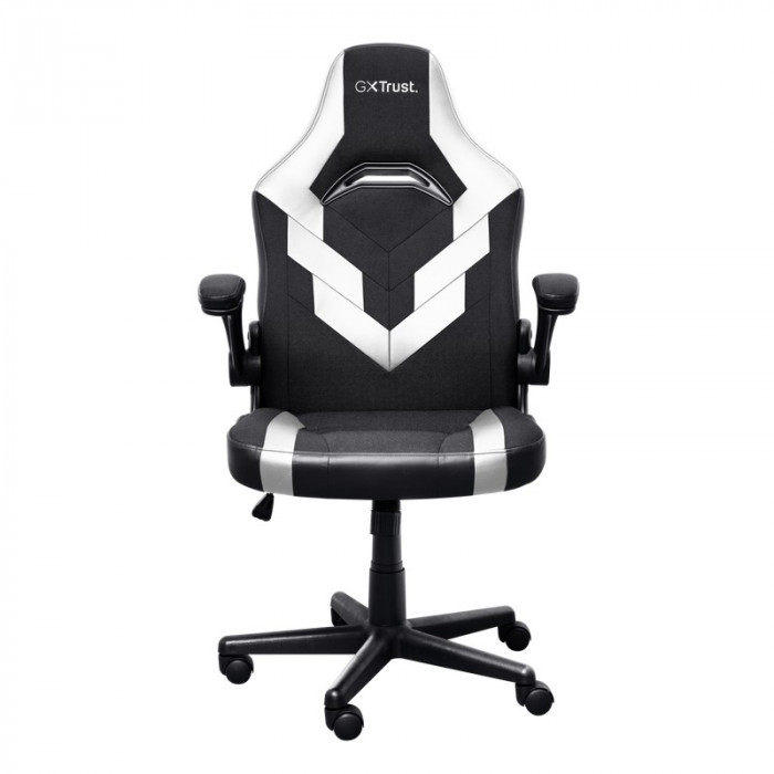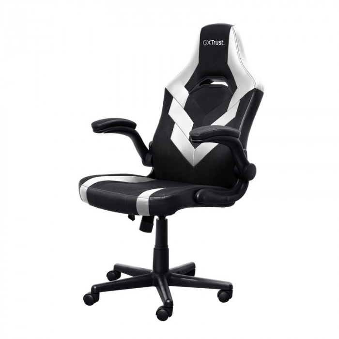 Trust Gaming Chair GXT 703W RIYE - Black/White, PU leather and breathable fabric, adjustable gaming chair with a strong frame, flip-up armrests, Class 4 gas lift, up to 140kg