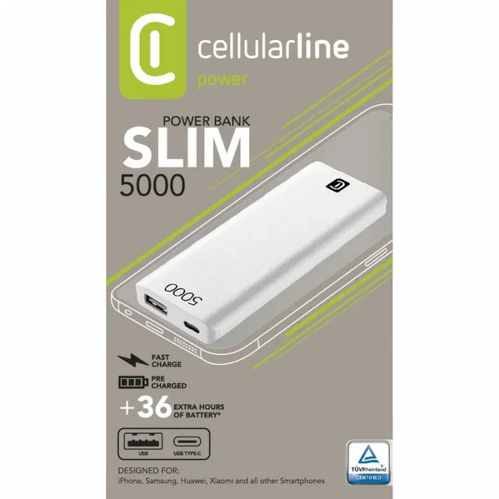 Acumulator extern Cellularline FreePower Slim 5000, 5mAh, Alb