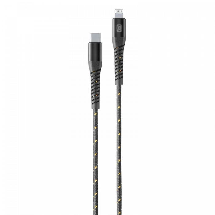 Cablu de încărcare și date Cellularline Strong Cable, Lightning/USB Type-C, 2m, Negru