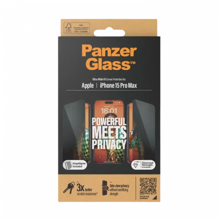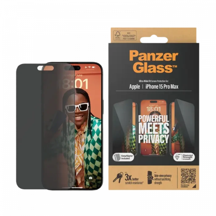 Sticlă de protecție PanzerGlass iPhone 15 Pro Max UWF Privacy wA, Transparent