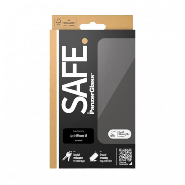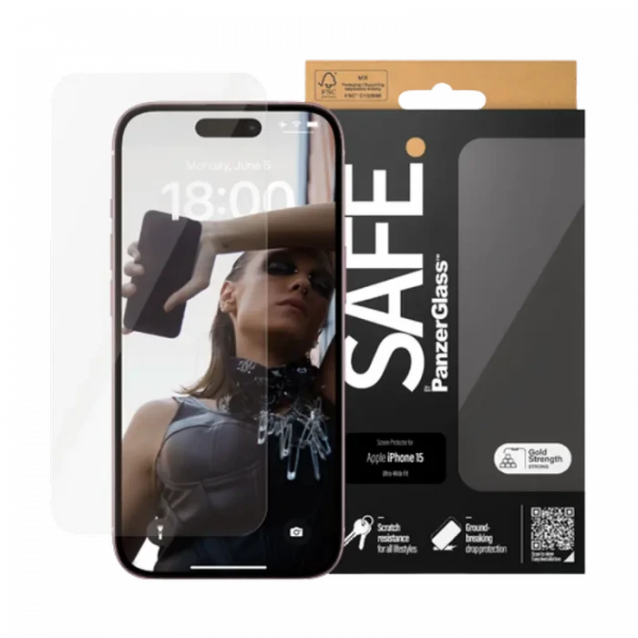 Sticlă de protecție PanzerGlass SAFE. UWF for iPhone 15 , Transparent