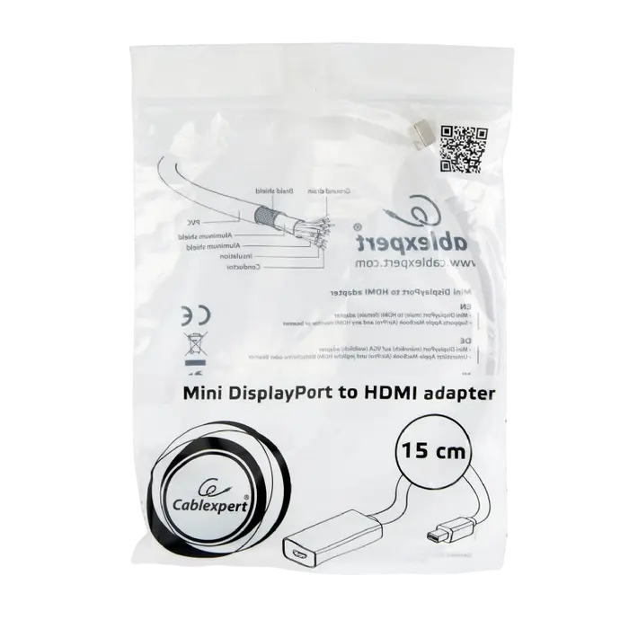 Adaptor Video Cablexpert A-mDPM-HDMIF-02-W, MiniDP (M) - HDMI (F), 0,15m, Alb