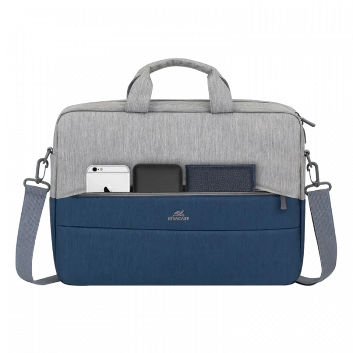 Geantă pentru Laptop Rivacase Prater, 15.6, Poliester, Gri | Albastru închis