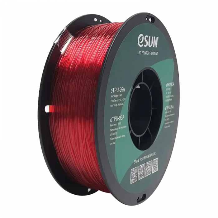 Filament pentru imprimantă 3D ESUN eTPU-95A, Roșu Transparent, 1,75 mm, 1 kg