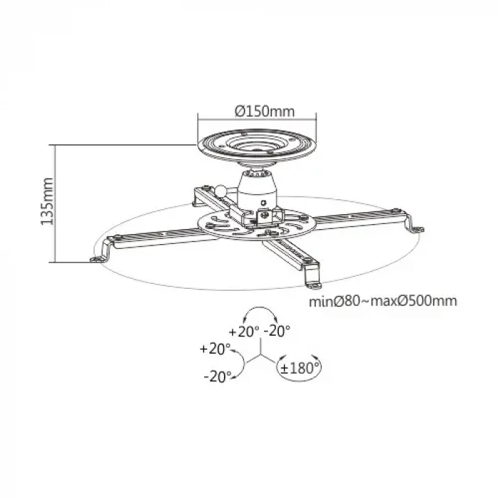 Suport pentru tavan BRATECK PRB-16-04F, Alb
