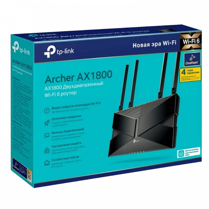 Router fără fir TP-LINK Archer AX1800, Wi-Fi, Negru