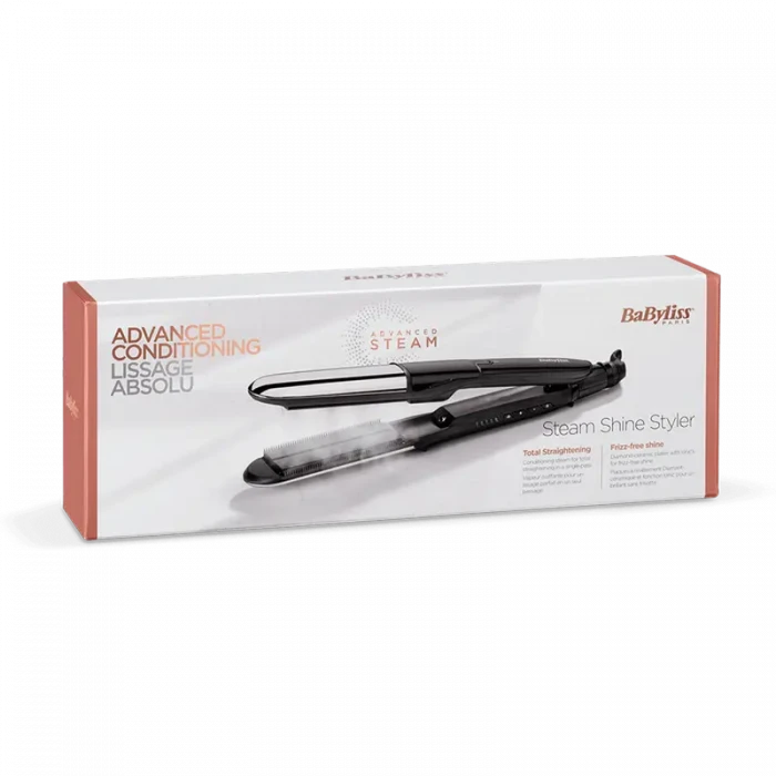 Placă de îndreptat părul BaByliss 2 in 1 Steam Shine ST496E, Negru | Argintiu