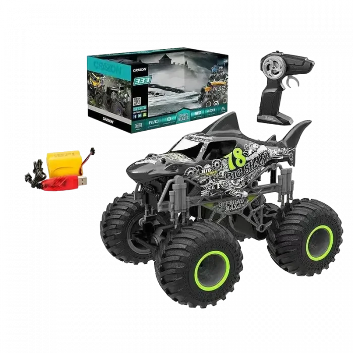 Jucărie cu telecomandă Crazon Oversize Wheel Cross-Road, 1:16, Negru/Verde (333-19164B)