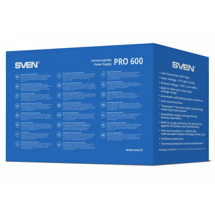 Sursă de alimentare neîntreruptibilă SVEN Pro 600, Linear-interactiv, 600VA, Turn