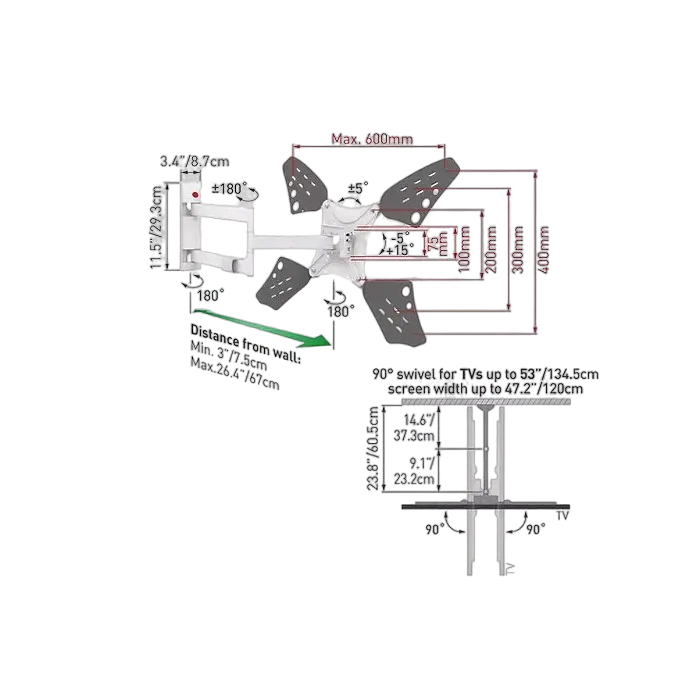 Suport TV de perete BARKAN 3400LW, Alb
