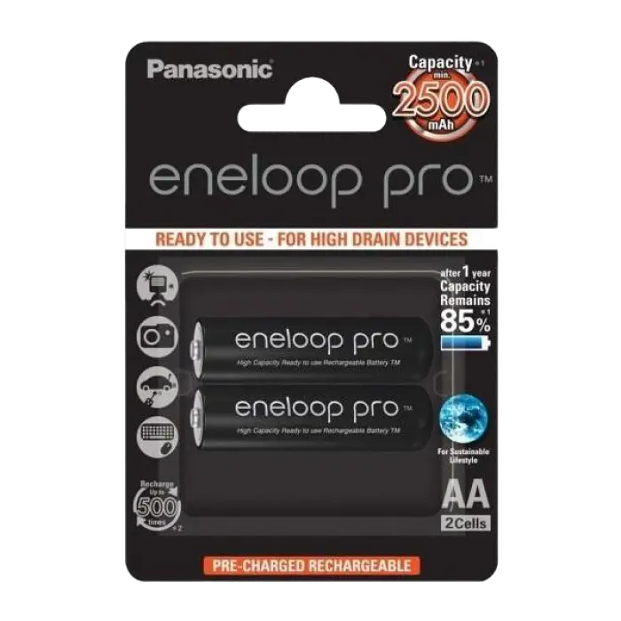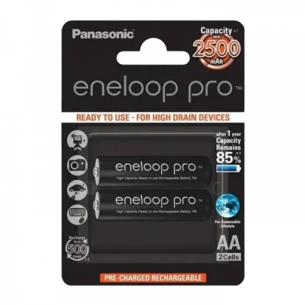 Аккумуляторы Panasonic BK-3HCDE, AA, 2500мА·ч, 2шт.