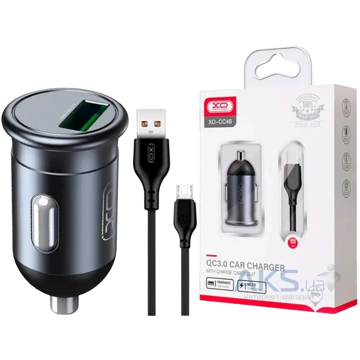 Автомобильное зарядное устройство XO CC46, 18Вт, Чёрный