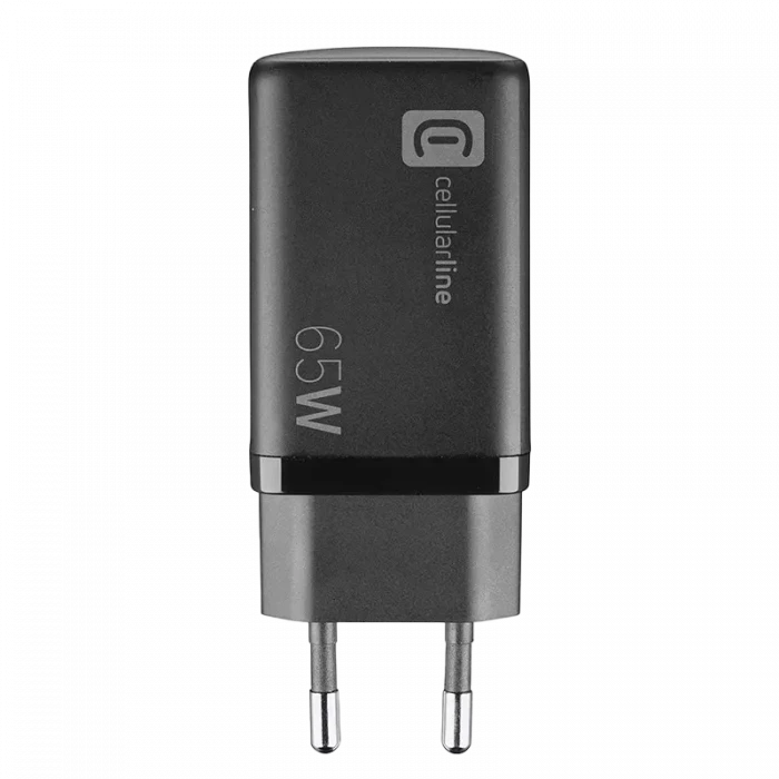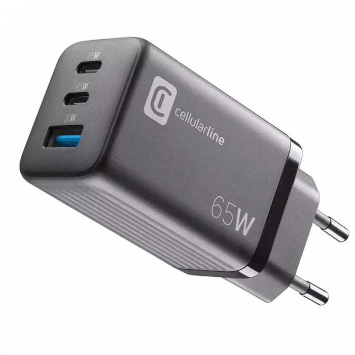 Зарядное устройство Cellularline Wall Charger GAN, 3 Ports, 65Вт, Чёрный