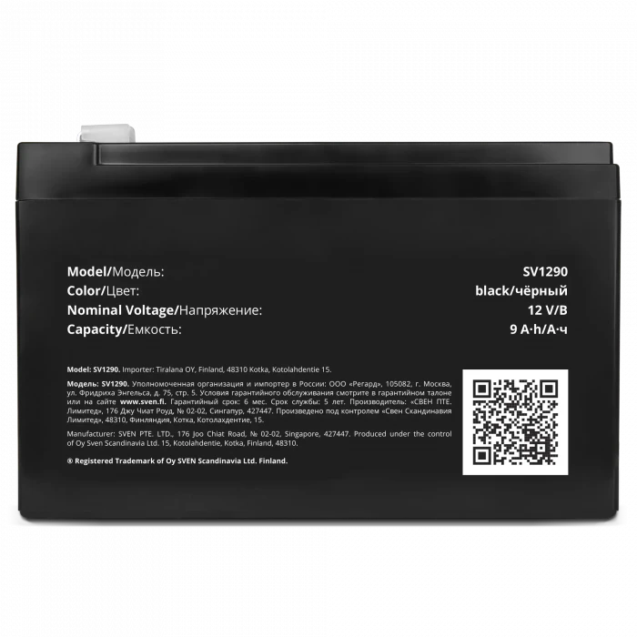 Аккумулятор для резервного питания SVEN SV1290, 12В, 9А*ч