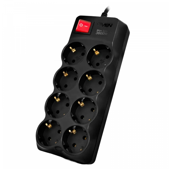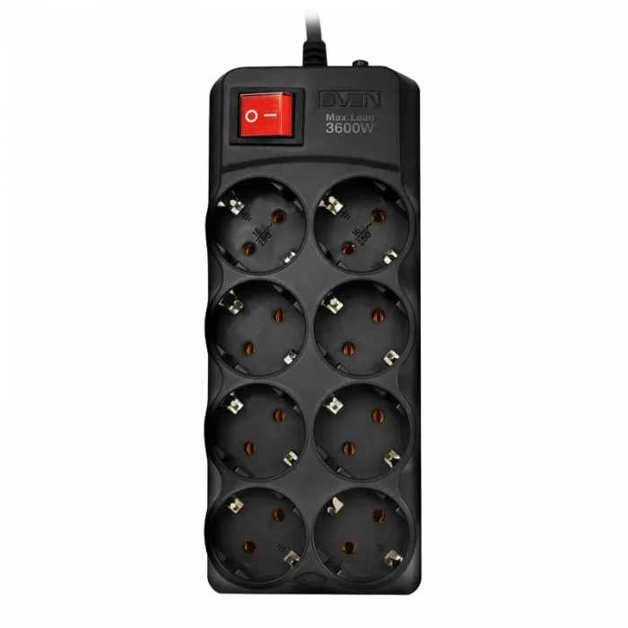 Сетевой фильтр SVEN SF-08-16, 8 Розеток, 3м, Чёрный