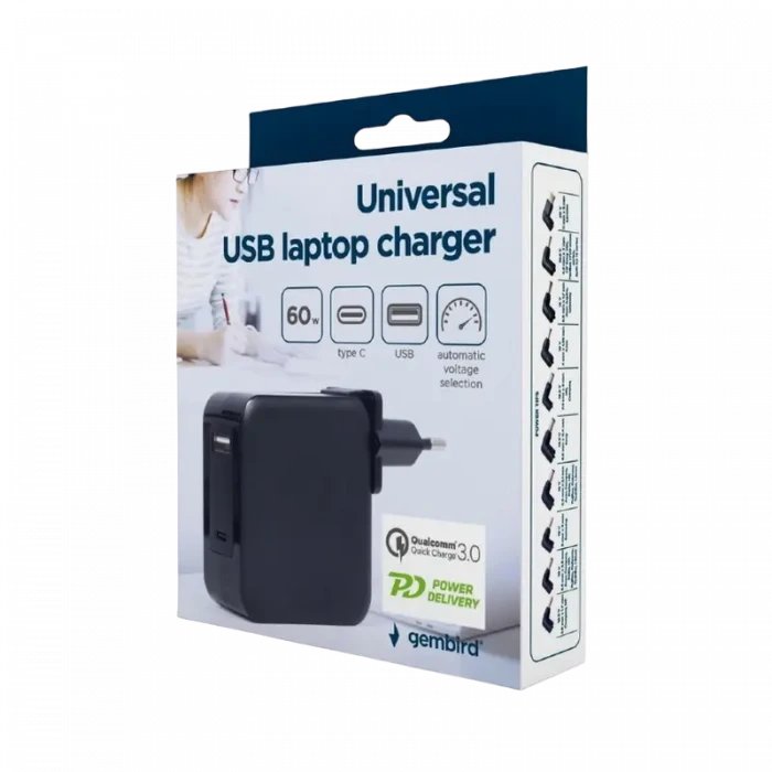 Универсальный адаптер питания Gembird NPA-PD60-01, 60Вт
