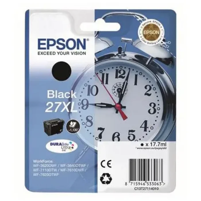 Картридж чернильный Epson 27 DURABrite Ultra, C13T27114022, Черный