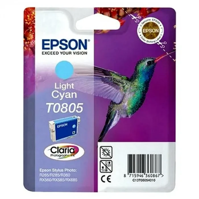 Картридж чернильный Epson T080 Claria Photographic, C13T08054011, Светло-Голубой