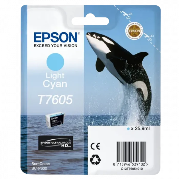 Картридж чернильный Epson T760, 26мл, Светло-Голубой