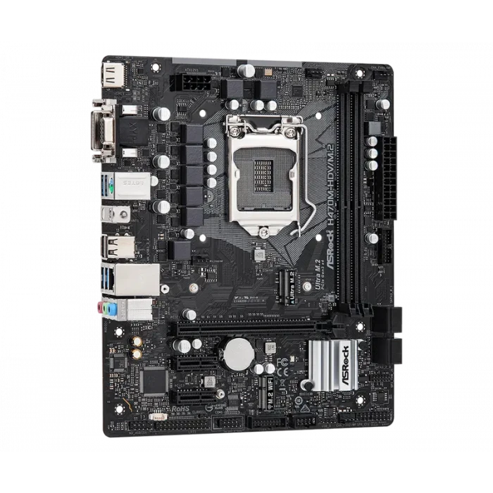 Материнская плата ASRock H470M-HDV/M.2, LGA1200, Intel H470, Micro-ATX