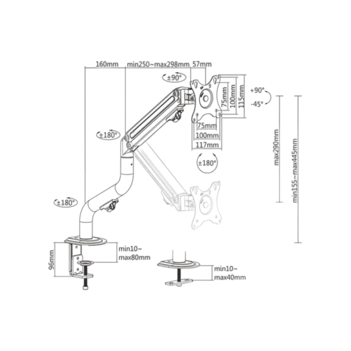 Настольный кронштейн для монитора Gembird MA-DA1-02, Чёрный