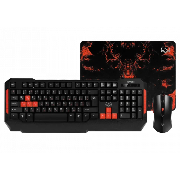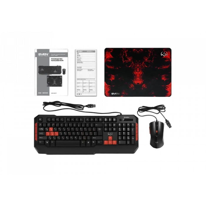 Клавиатура, мышь и коврик для мыши SVEN GS-9000, Проводное, Черный/Красный