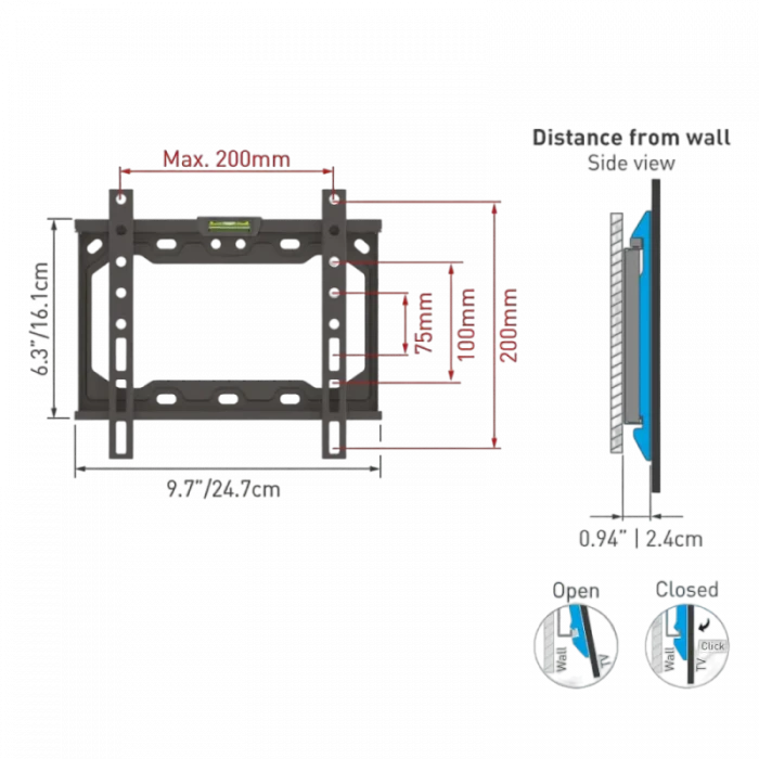 Фиксированное настенное крепление BARKAN E202+, Чёрный