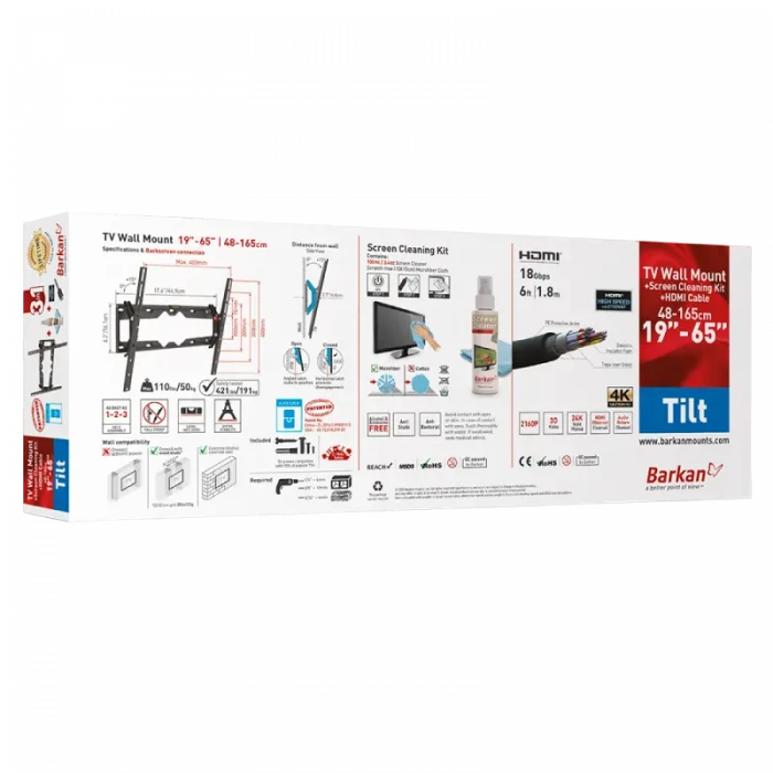 Наклонное настенное крепление BARKAN CM310+, Чёрный